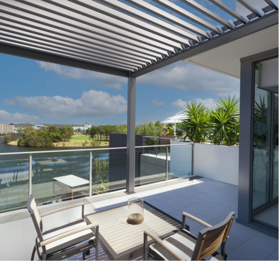 Pergola je vybavená elektrickým pohonom s 24 V motorom, ktorý umožňuje pohodlné natáčanie lamiel až do uhla 120°. Ovládanie je možné prostredníctvom diaľkového ovládača alebo modernej mobilnej aplikácie, vďaka čomu máte tienenie a prúdenie vzduchu vždy pod kontrolou.
