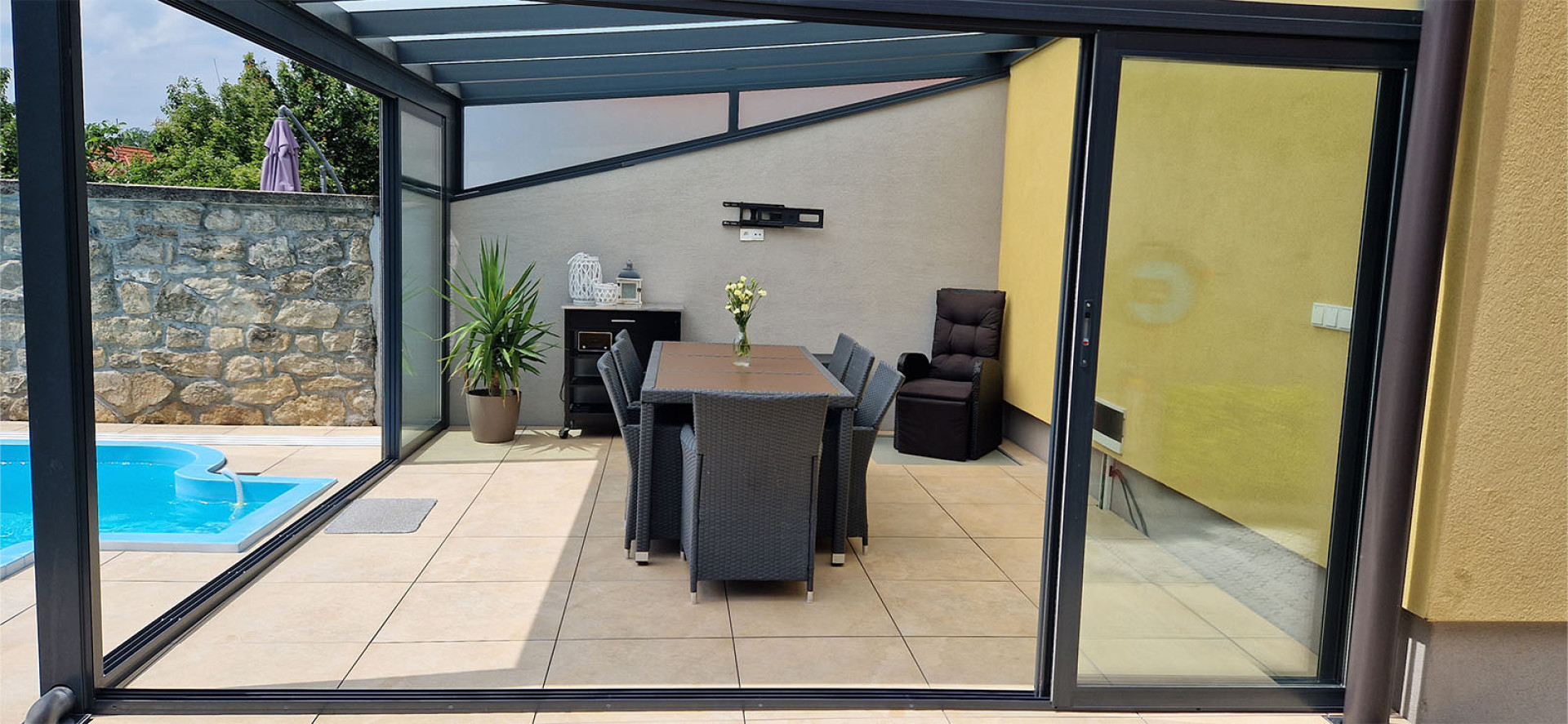 Všetky pergoly vyrábame na mieru a dokážeme sa prispôsobiť špecifickým požiadavkám zákazníka i nárokom terénu. Vďaka jedinečnému systému je možné pergolu hocikedy dodatočne zaskliť.